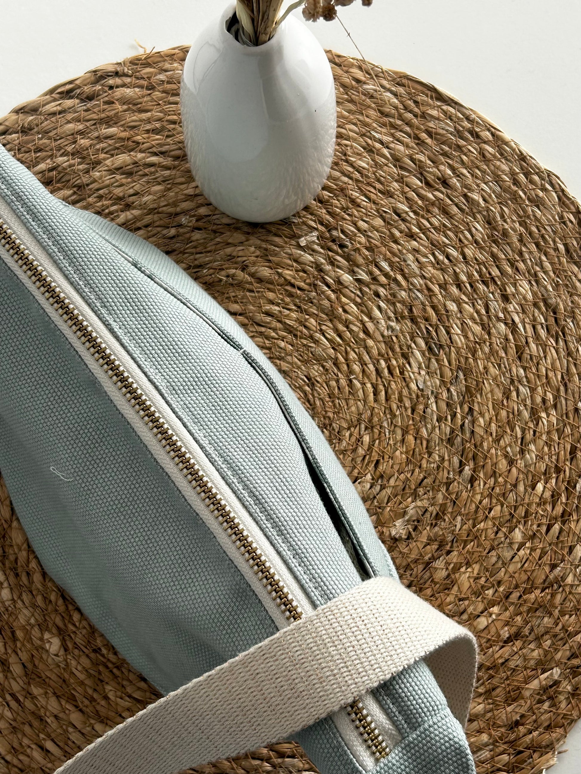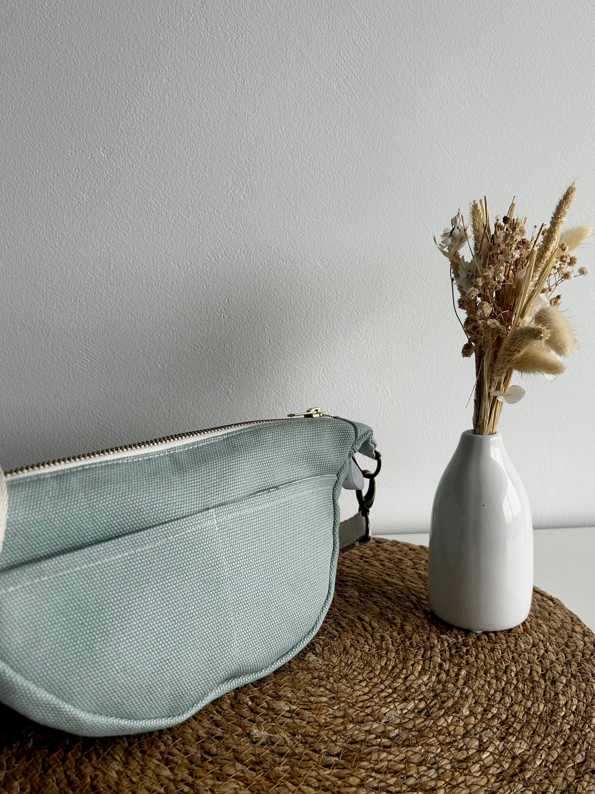 La banane coton natté vert d’eau est pratique et confortable pour tous les jours. Sa forme demi-lune est unique et ses poches vous permettent de garder vos affaires organisées. Légère, elle se porte facilement, à la main, à l’épaule ou en travers.