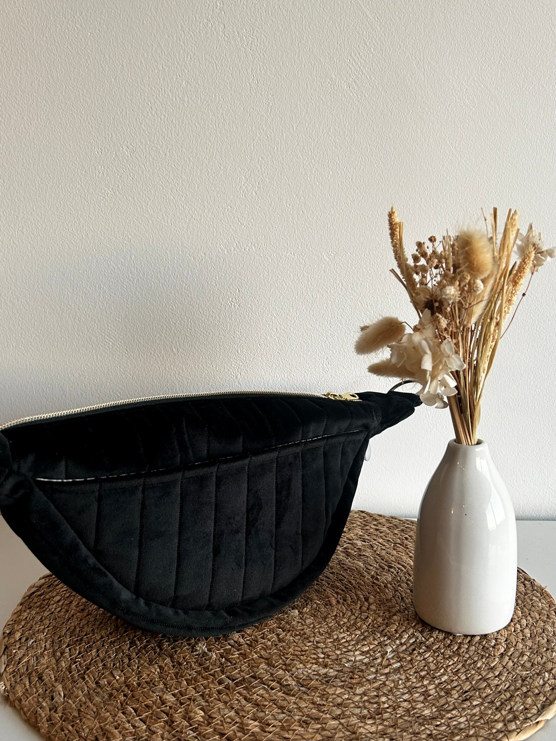 La banane matelassée noire est pratique et confortable pour tous les jours. Sa forme demi-lune est unique et ses poches vous permettent de garder vos affaires organisées. Légère, elle se porte facilement, à la main, à l’épaule ou en travers.
