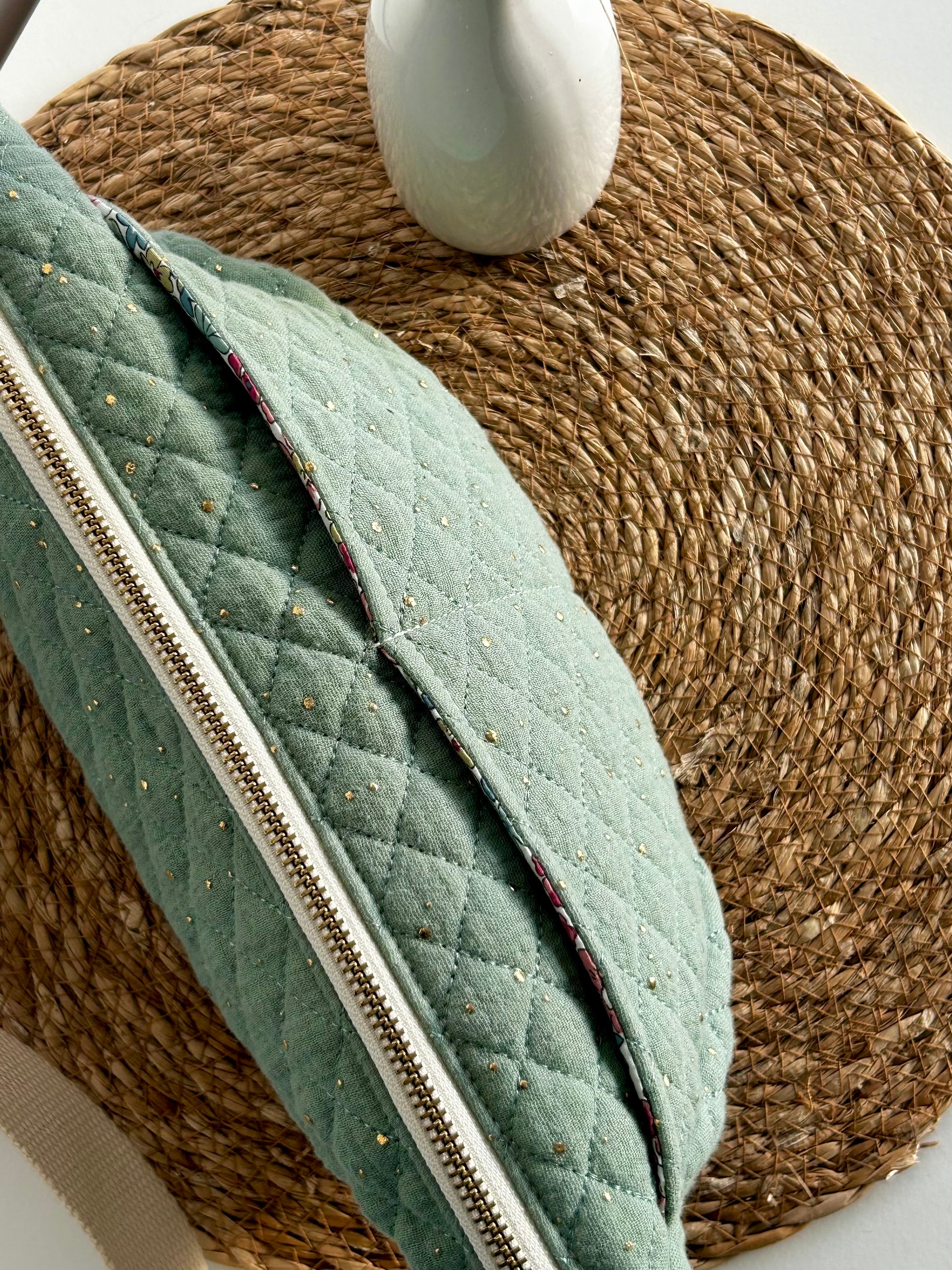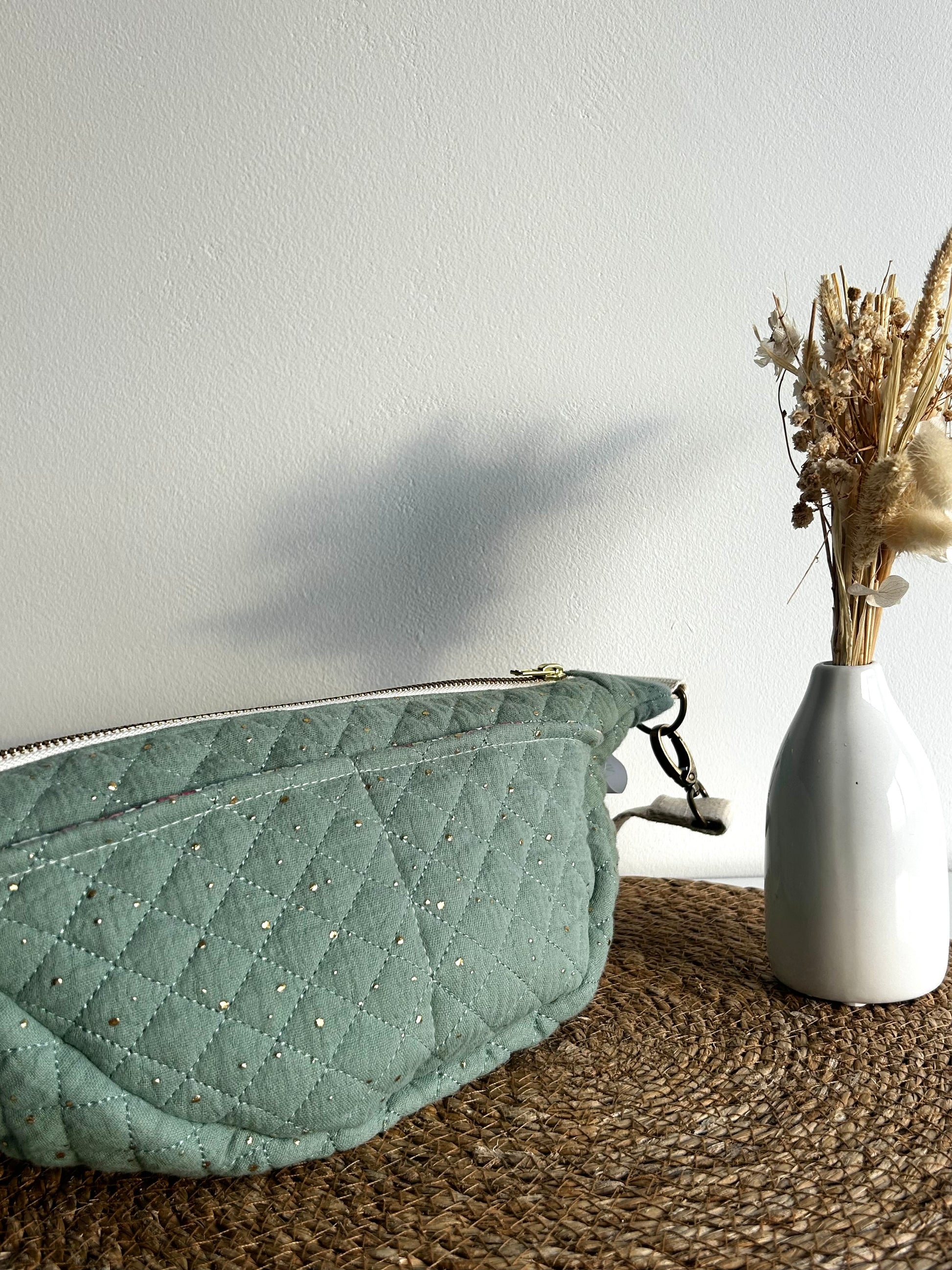 La banane verte à paillettes est pratique et confortable pour tous les jours. Sa forme demi-lune est unique et ses poches vous permettent de garder vos affaires organisées. Légère, elle se porte facilement, à la main, à l’épaule ou en travers.