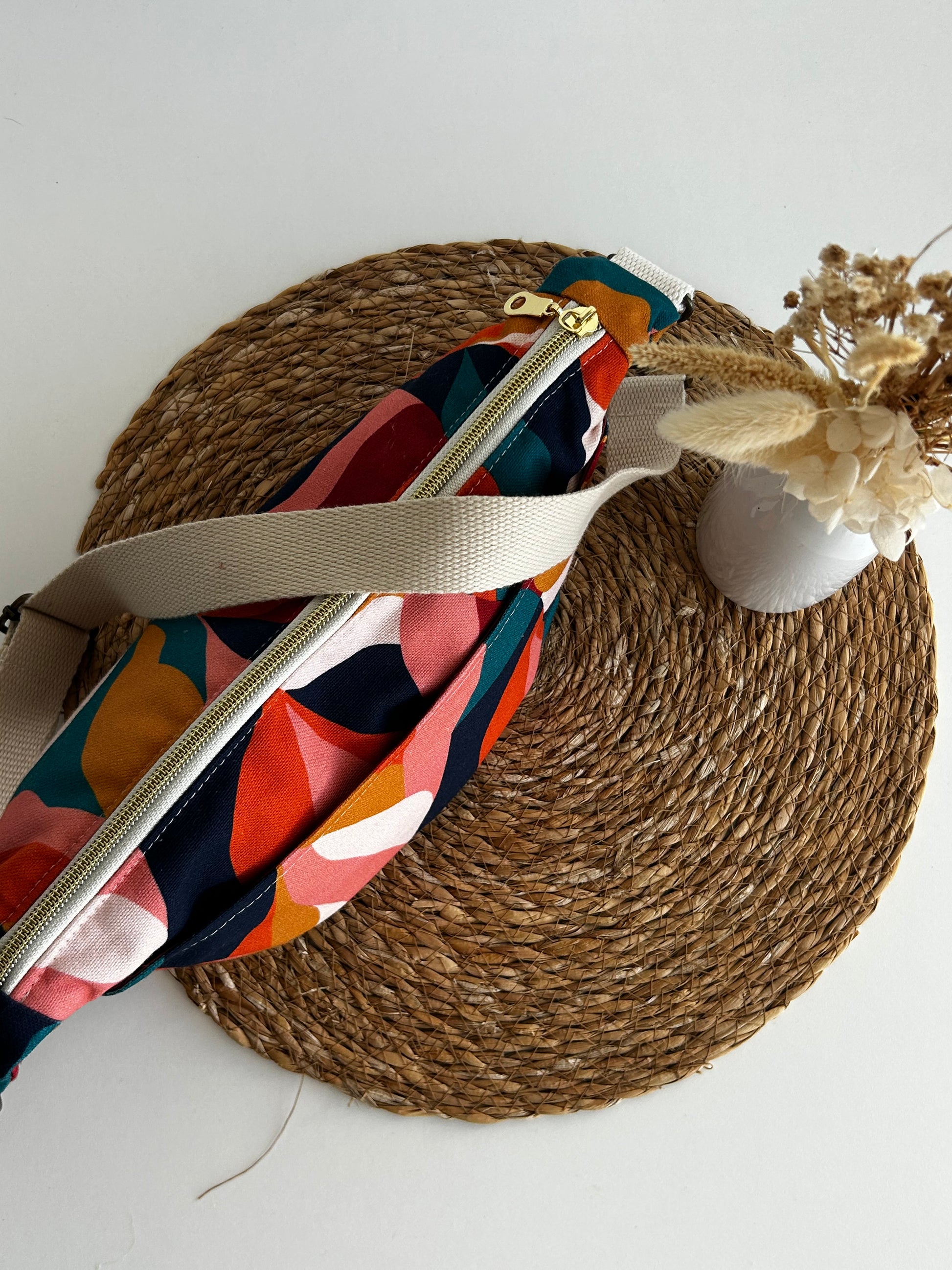 La banane multicolore est pratique et confortable pour tous les jours. Sa forme demi-lune est unique et ses poches vous permettent de garder vos affaires organisées. Légère, elle se porte facilement, à la main, à l’épaule ou en travers.